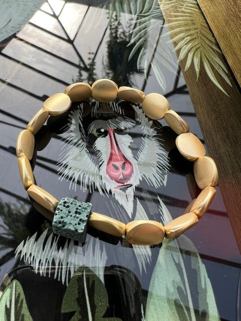 Stretch bracelet with matt gold & square dark green lava bead, made using very strong elastic, comfortable to wear.